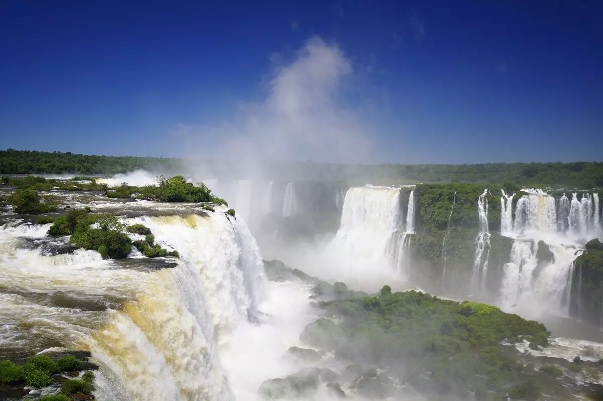 Iguazú besteht aus 275 größeren und kleineren Wasserfällen, die sich über 2,7 km erstrecken und zwischen 60 und 82 Meter hoch sind.