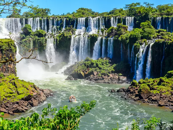 Die Iguazú-Wasserfälle sind die größten Wasserfälle der Welt. Sie bestehen aus 275 verschieden großen Wasserfällen, die sich hufeisenförmig am Fluss Iguazú 2,7 km weit ausbreiten. Viele Wasserfälle fließen zusammen und stürzen in rauschenden Kaskaden über die 85 Meter hohen Felsen.