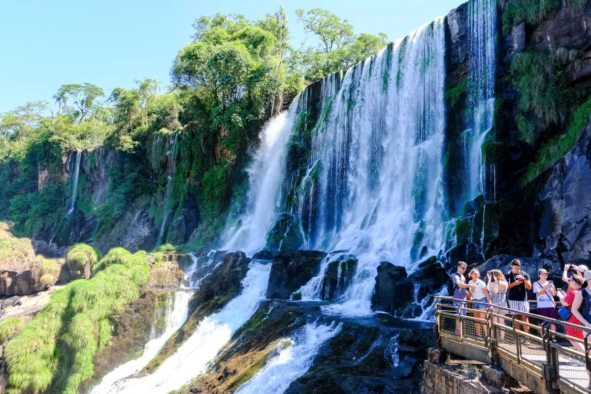 Auf diesem Ausflug müssen wir unsere Pässe dabei haben, weil wir die Grenze zwischen Argentinien und Brasilien überschreiten. Die meisten Wasserfälle befinden sich auf der argentinischen Seite, die beste Aussicht bekommt man jedoch auf der brasilianischen Seite. Sie sehen die Wasserfälle aus verschiedenen Winkeln, und mit einem Aufzug hat man Zugang zu einer Aussichtsplattform. Von hier aus bekommen Sie einen fantastischen Ausblick direkt hoch zum Rachen des Teufels, wo Sie vom Dunst des Wasserfalles eingehüllt werden. Auf den Gehwegen besteht auch die Chance, dass man kleine Nasenbären erblickt, die uns oft neugierig begleiten.