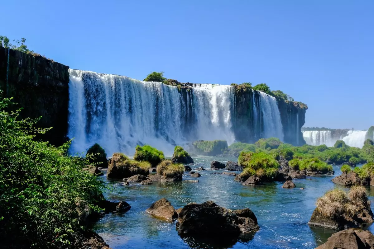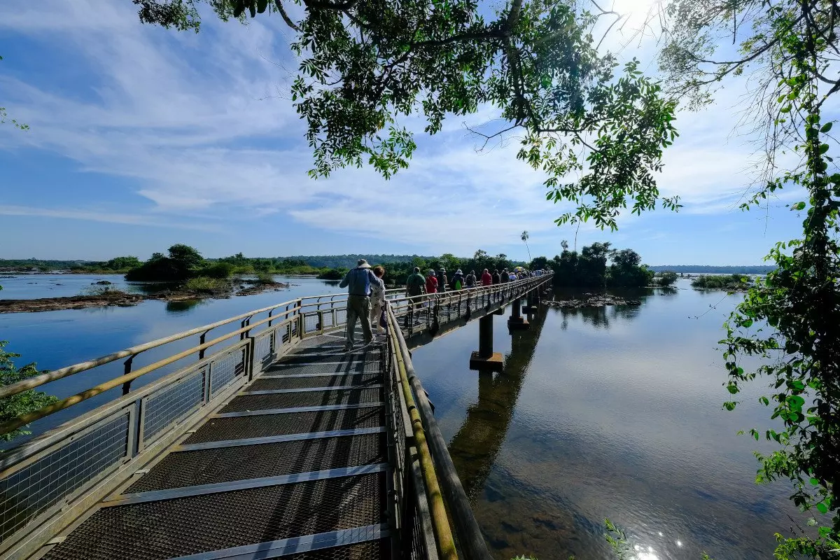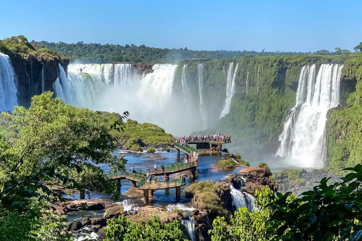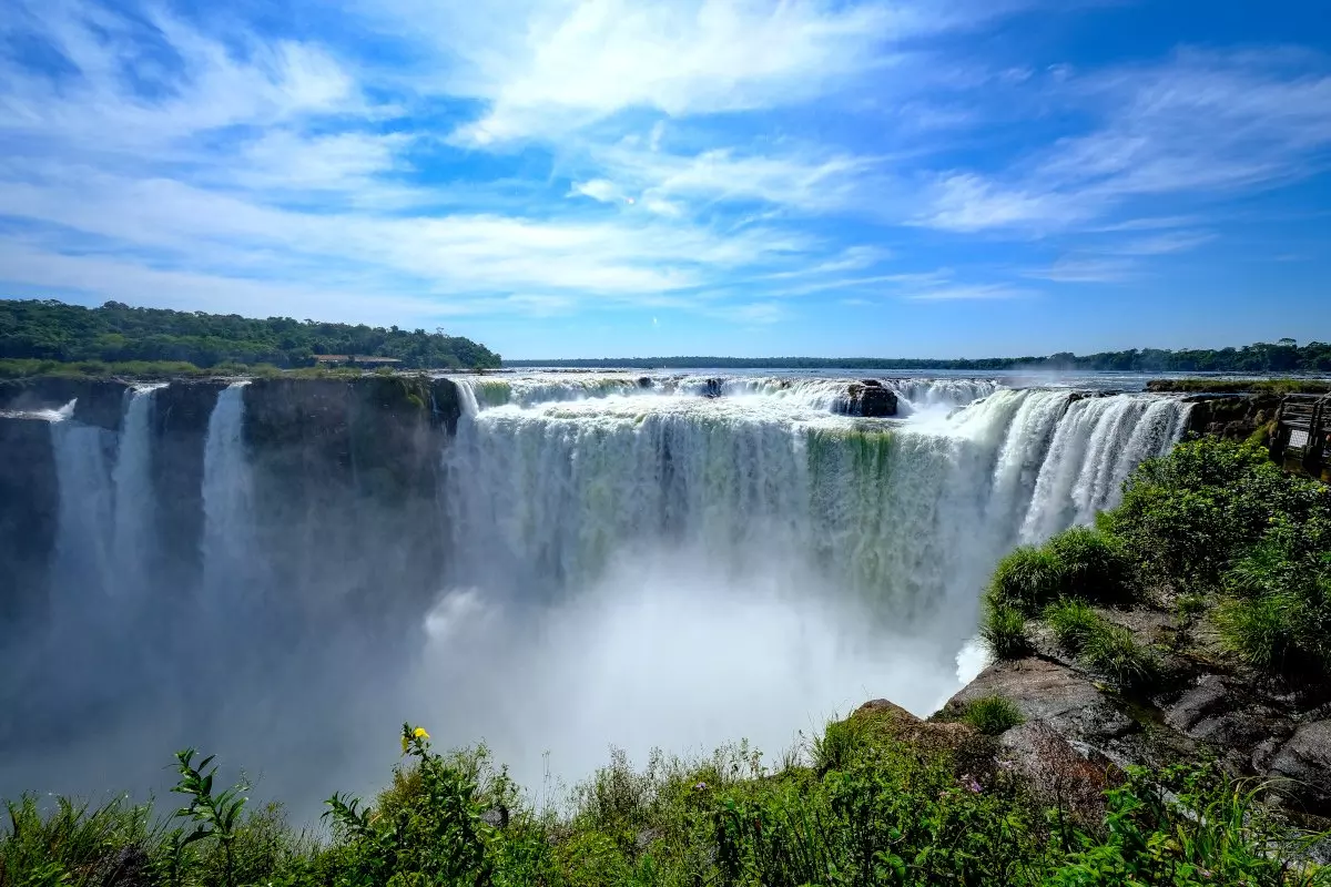 Die meisten der Wasserfälle befinden sich auf der argentinischen Seite, von der brasilianischen Seite aus aber haben Sie das schönste Panorama auf die Wasserfälle. Sie bestaunen die Wasserfälle aus verschiedenen Winkeln. Über eine lange Brücke kommen Sie zu einer Plattform, von der aus Sie direkt in den Teufelsrachen blicken können. Obwohl der Wasserfall ein gutes Stück entfernt ist, machen Sie die Wasserspritzer recht nass!