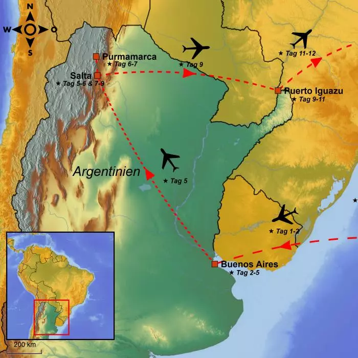 Heute geht die Reise von einem ausgewählten Flughafen mit Zwischenlandung(en) unterwegs nach Argentinien.