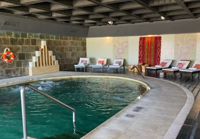 Im Garten des Hotels befindet sich ein großer Swimmingpool, in dem Sie ein erfrischendes Bad nehmen können. Oder Sie legen sich mit geschlossenen Augen an den Pool und lauschen dem Tosen der Wasserfälle – eine großartige Therapie.