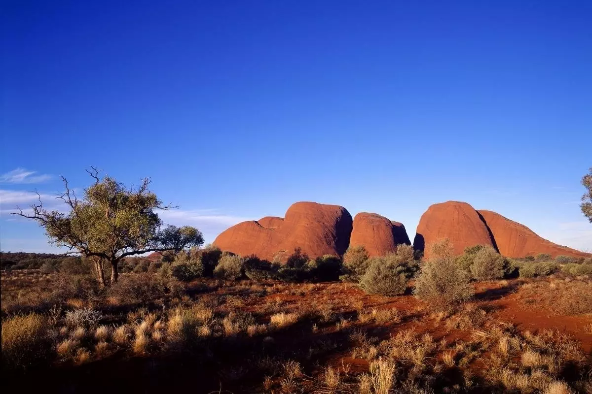 Vom Uluru geht es weiter zu den Felsformationen Kata Tjuta, die rund 50 km weiter westlich liegen. Kata Tjuta bedeutet „viele Köpfe“. Aus einiger Entfernung sieht man deutlich, dass die rund 36 Felsformationen Köpfen gleichen, die aus der Landschaft ragen.
