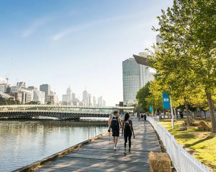 Einen Spaziergang am Fluss Yarra können wir am ersten Tag wärmstens empfehlen. Dort befinden sich auch gemütliche Parks, Kunsteinrichtungen und unzählige verschiedene Restaurants. Genießen Sie dort Ihre Mahlzeit mit Blick auf die Skyline der Stadt.