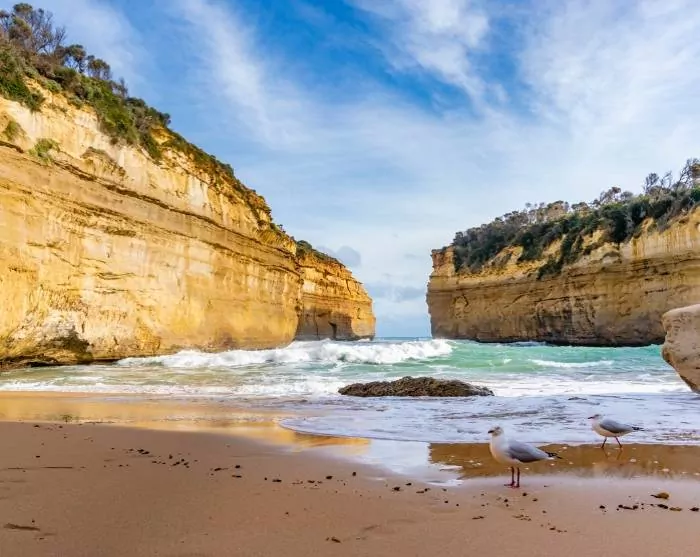 Offiziell verläuft diese Straße ca. 240 km weit, von Torquay, ca. 100 km südwestlich von Melbourne, bis Allansford in der Nähe von Warrnambool. Dieser Abschnitt wartet mit spektakulären Küstenlandschaften, Felsformationen und Naturgebieten auf Sie, unter anderem auch mit den berühmtesten Felsformationen Australiens, den 12 Apostles und Loch Ard Gorge.