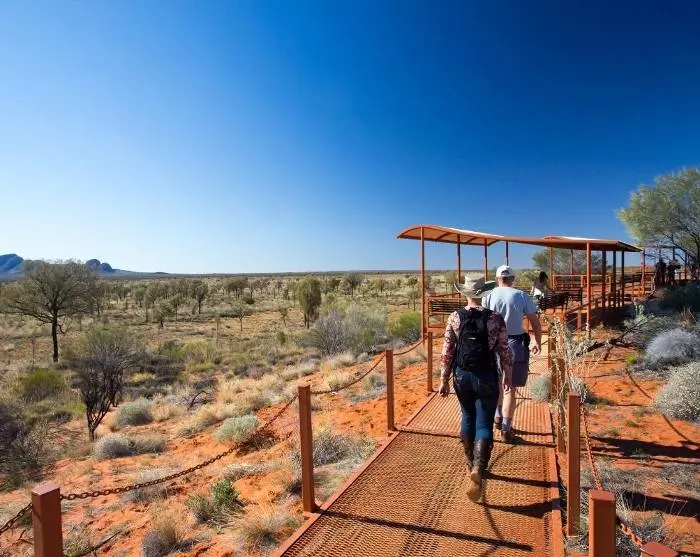 Nach dem Sonnenaufgang fahren Sie rund 50 km nach Westen, zu den spektakulären Felsformationen Kata Tjuta. Das Gebiet um Kata Tjuta ist ebenfalls heilig für die Ureinwohner. Es gibt dort Orte, die man als Besucherin oder Besucher niemals besuchen können wird. Glücklicherweise gibt es aber auch viele Orte, die trotzdem zugänglich sind. Eine der beliebtesten Wanderungen durch diese wunderschönen Felsformationen ist die Wanderung durch die Walpa-Schlucht. Unterwegs erzählt Ihr Guide Ihnen mehr über die Geologie an diesem wundersamen Ort. Vielleicht erfahren Sie dann, was „Kata Tjuta“ eigentlich bedeutet?