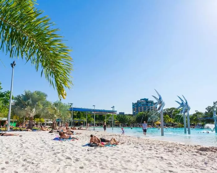 Cairns ist eine lebendige Küstenstadt im Norden von Queensland. Besonders bekannt ist die Stadt als Pforte zum Great Barrier Reef, dem größten Korallenriff der Welt. Zudem warten in der Stadt unzählige Aktivitäten, Cafés, Restaurants und Läden auf Sie. Da es hier keinen Strand gibt, kompensiert man mit der mitten in der Stadt angelegten, riesigen, künstlichen Lagune, in der Sie baden und die Sonne genießen können.
