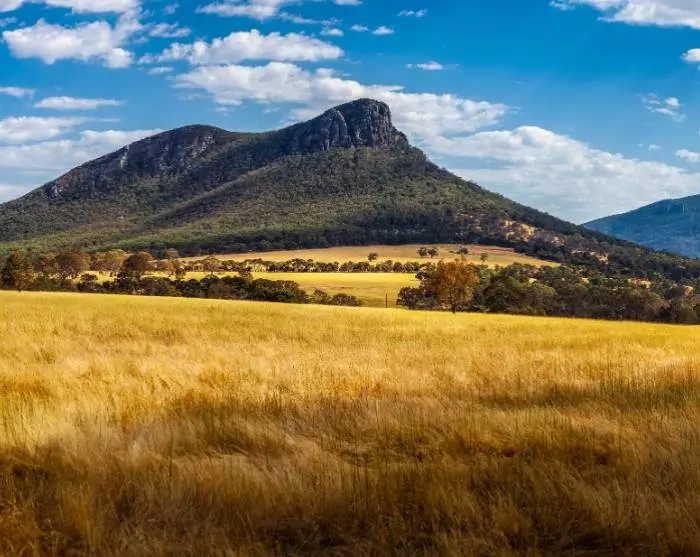 Auf der Fahrt von Ballarat nach Halls Gap fahren Sie durch weitläufige Weinlandschaften, soweit das Auge reicht. Die Region ist Teil der Great Grape Touring Route, die einige der besten Weinregionen Victorias miteinander verbindet.
