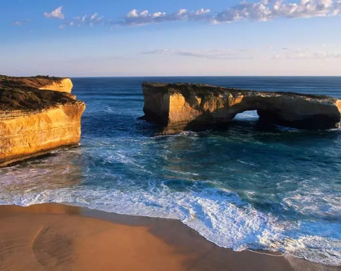 Ab hier werden Sie häufig anhalten, um Fotos zu machen. Kurz vor der bezaubernden Krabbenfischerstadt Port Campbell befindet sich die London Bridge, eine ikonische Formation auf dieser Route. Einst stand hier ein doppelter Bogen, der der London Bridge ähnelte. Dieser stürzte aber 1990 in sich zusammen und formte eine geteilte Landmasse, die dennoch unbedingt einige Fotos wert ist.