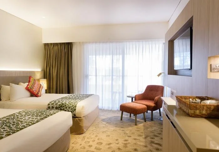 Das Hotel bietet 207 Zimmer mit vielen verschiedenen, wählbaren Kategorien. Es handelt sich um ein wirklich erstklassiges Hotel, was auch bei den Zimmern deutlich wird. Sie sind geräumig und in dezenten Farben eingerichtet. Einige strahlen einen Hauch an Tropenatmosphäre aus. Alle Zimmer verfügen über eine Klimaanlage, eine Tee- und Kaffee-Ecke, einen Safe, Bügeleisen und -brett, ein Flachbildschirm-TV-Gerät und gratis WLAN. Ein Großteil der Zimmer besitzt zudem einen eigenen Balkon.