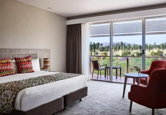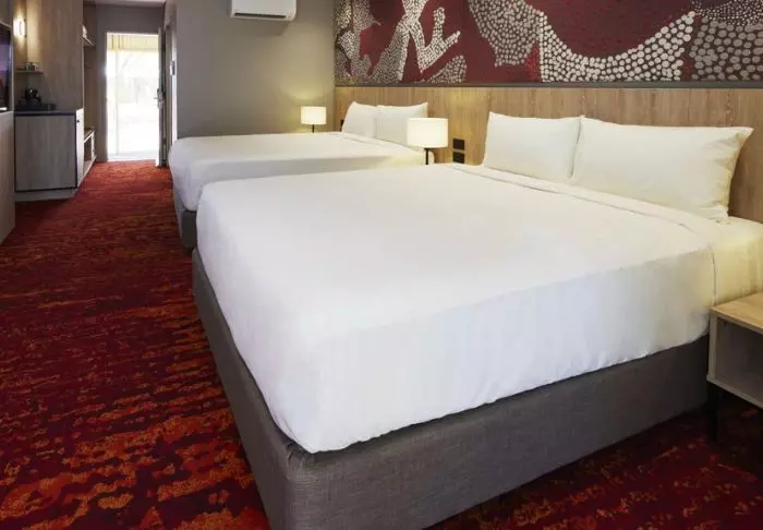 So sehr man die Gäste draußen ein wenig von der Rauheit Australiens abschirmen möchte, so sehr lädt man den australischen Charme in die Zimmer ein. Die Wände sind mit Kunst von Einheimischen geschmückt. Es besteht kein Zweifel daran, wo Sie sind. Die Zimmer sind geräumig und besitzen alle einen Loungebereich, in dem Sie sich mit einem guten Buch entspannen können. Zudem haben sie eine Terrasse oder einen Balkon. Es gibt alle erdenklichen Annehmlichkeiten – und natürlich gratis WLAN.