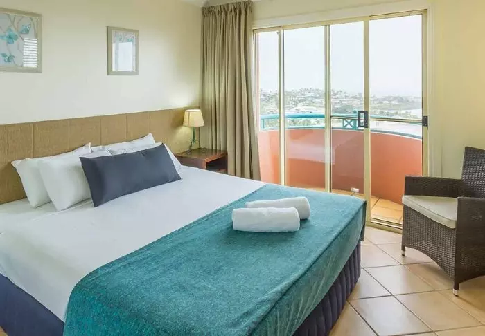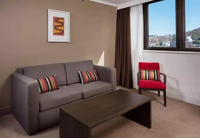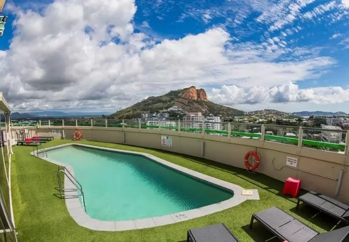 Die 200 Hotelzimmer sind geräumig und elegant eingerichtet. Alle bieten eine wunderschöne Aussicht auf die Stadt, Castle Hill, Magnetic Island oder den Fluss. Zudem sind alle Zimmer mit vielen Annehmlichkeiten ausgestattet, darunter gratis WLAN, Flachbildschirm-TV-Gerät, Kühlschrank, Kaffee- und Tee-Ecke sowie mit einem modernen Badezimmer mit Föhn und kostenlosen Toilettartikeln.