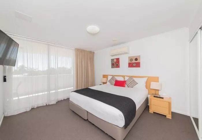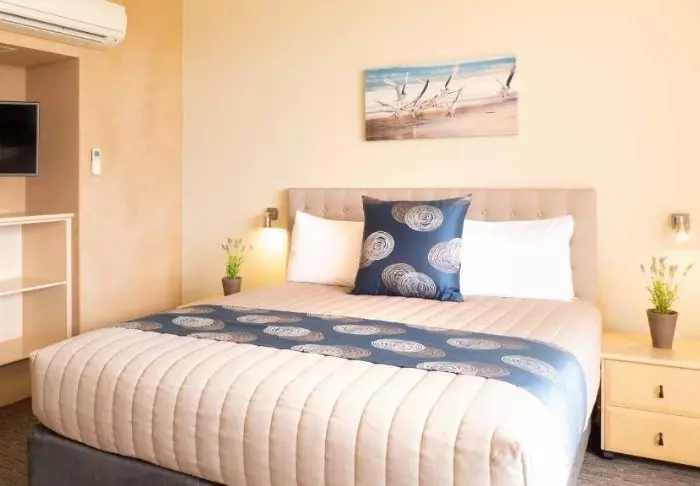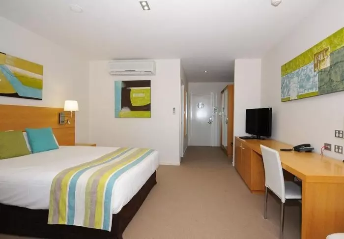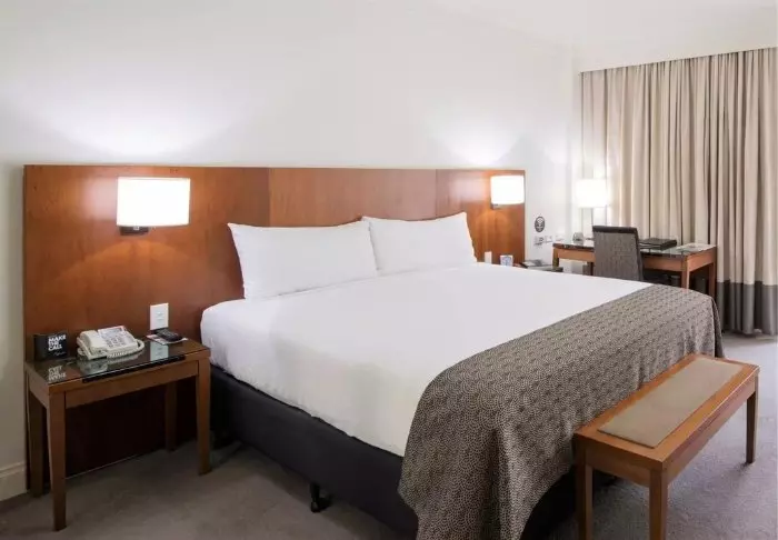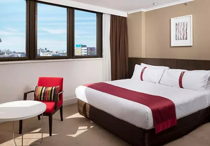 Das Holiday Inn bietet 226 Zimmer mit großen Fenstern vom Boden bis zur Decke, welche das Licht ins Zimmer strömen lassen. Alle Zimmer sind mit Klimaanlage, Safe, Bügeleisen und -brett, Tee- und Kaffee-Ecke, Mini-Kühlschrank, Flachbildschirm-TV-Gerät sowie gratis WLAN ausgestattet. Ganz ungewöhnlich für Australien ist, dass im Hotel das Frühstück im Preis inbegriffen ist!