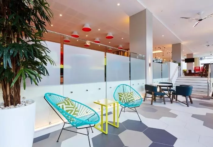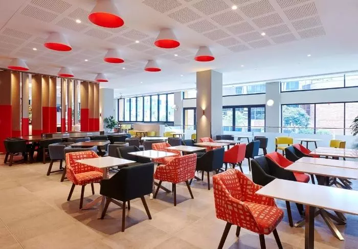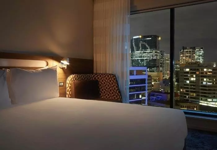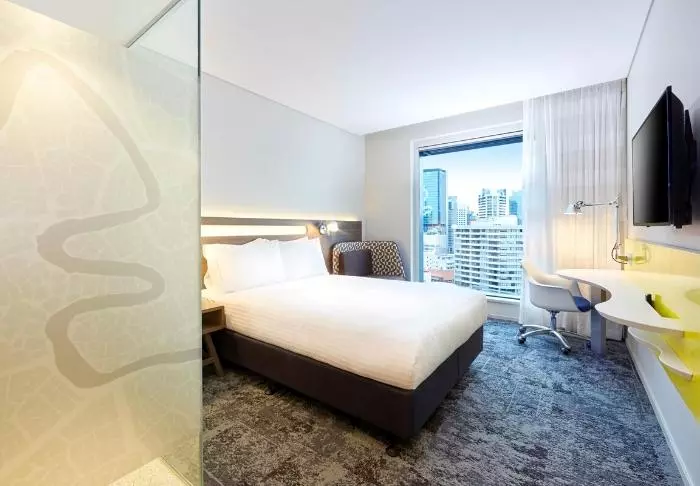 Das Holiday Inn bietet 226 Zimmer mit großen Fenstern vom Boden bis zur Decke, welche das Licht ins Zimmer strömen lassen. Alle Zimmer sind mit Klimaanlage, Safe, Bügeleisen und -brett, Tee- und Kaffee-Ecke, Mini-Kühlschrank, Flachbildschirm-TV-Gerät sowie gratis WLAN ausgestattet. Ganz ungewöhnlich für Australien ist, dass im Hotel das Frühstück im Preis inbegriffen ist!