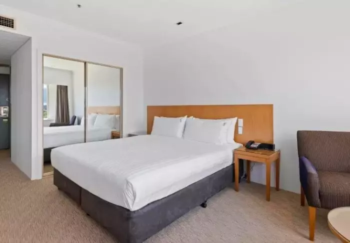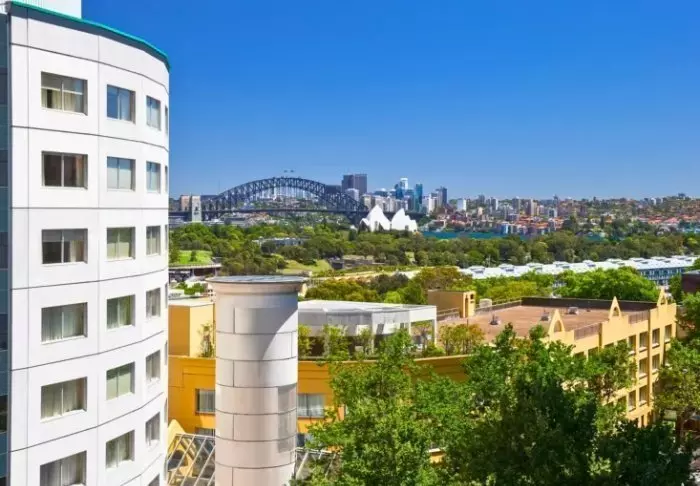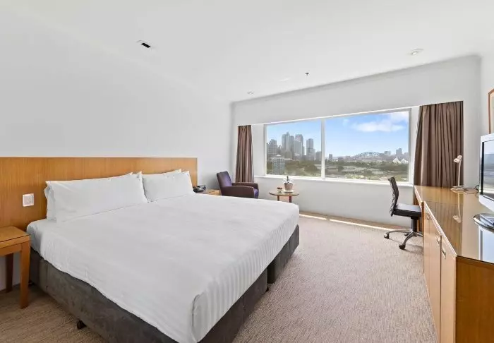 Es ist möglich, bei der Zimmerkategorie ein Upgrade vorzunehmen und als Add-on ein Zimmer mit Blick auf den Hafen und die Skyline von Sydney zu buchen.