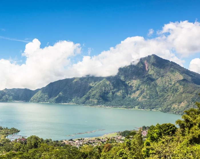 Danach wird am Aussichtspunkt im Hochland Kintamani angehalten. Von hier aus haben Sie eine herrliche Aussicht auf den aktiven Vulkan Batur und den dazugehörigen gleichnamigen Kratersee.