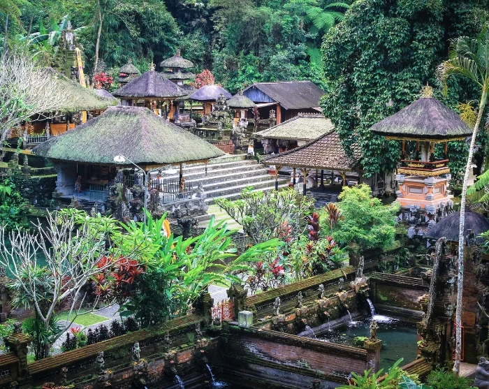 Weiter geht die Reise zum Sebatu-Tempel, auch bekannt als Pura Gunung Kawi Sebatu, der als einer der friedvollsten und spirituellsten Tempel Balis gilt. Eingebettet in dichten Dschungel wurde der Tempel um eine kristallklare Quelle gebaut, von der man glaubt, dass sie heilende Kräfte besitzt. Hier können Sie an einer traditionellen balinesischen Wasserreinigungszeremonie teilnehmen, bei der das heilige Quellwasser für die Reinigung von Körper und Geist steht. Ihr Guide erklärt Ihnen die Bedeutung dieser Rituale und zeigt Ihnen, wie die Einheimischen in die kühlen Becken hinabsteigen, ein stilles Gebet sprechen und das Wasser über sich fließen lassen – ein Erlebnis, das Sie mit einem unverkennbaren Gefühl von Ruhe und Besinnlichkeit zurücklässt.