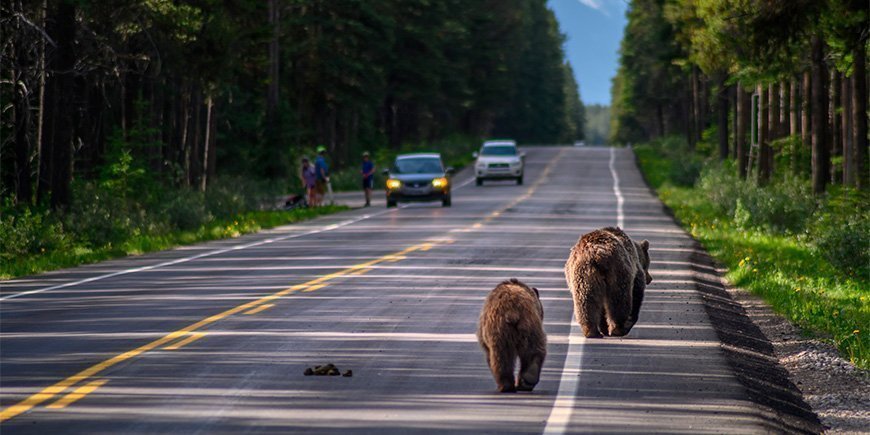 Gerade beim Fahren durch bewaldete Gebiete oder in der Nacht kann es vorkommen, dass Ihnen Tiere wie Hirsche, Elche oder sogar Bären auf der Straße begegnen. Fahren Sie in diesen Bereichen langsamer und besonders aufmerksam.