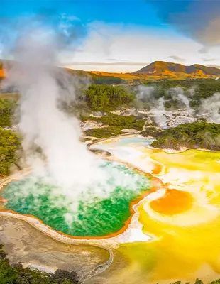 Rotorua, malerisch auf der Nordinsel gelegen, ist bekannt für seine geothermischen Wunder – und für die enge Verbindung zur lebendigen Māori-Kultur. Hier erleben Sie hautnah, wie die Naturkräfte und das spirituelle Erbe der Māori miteinander verbunden sind.