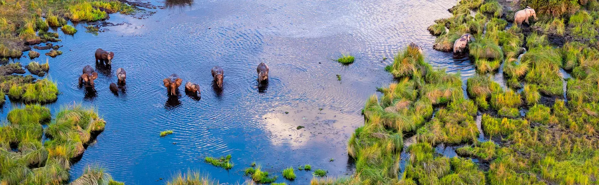 Im Chobe-Nationalpark übernachten Sie in einer herrlichen Lodge mit Aussicht auf den breiten Fluss Chobe. Sie machen Game Drives und Bootsfahrten und genießen den Anblick der riesigen Elefantenherden und gigantischen Krokodile.