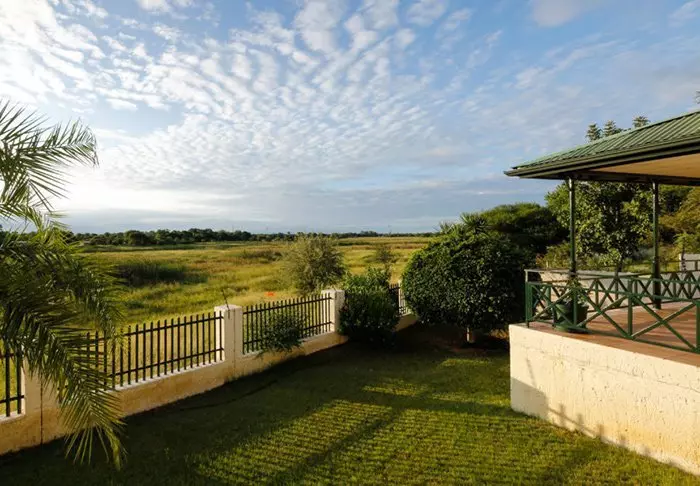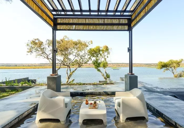 Die Gemeinschaftsbereiche – Restaurant, Bar, Lounge und Pool – bieten alle Aussicht auf den Fluss und herrlichen Schatten von den Bäumen, die um die Lodge aufragen. Beim Bau der Lodge wurde nämlich wirklich auf die Umwelt Rücksicht genommen. Alles wurde ausschließlich aus regionalen Materialien errichtet. Der Bush um die Lodge blieb erhalten. Die Elektrizität stammt primär aus Solarzellen, alle Leuchten sind LED-Leuchten. Auch Gäste werden gebeten, den Müll zu trennen. Seife und Shampoo sind ebenfalls umweltfreundlich.