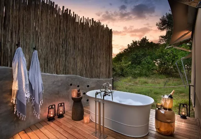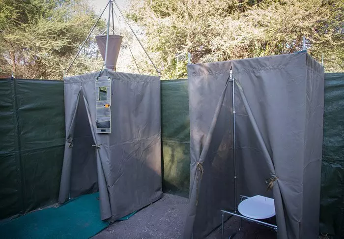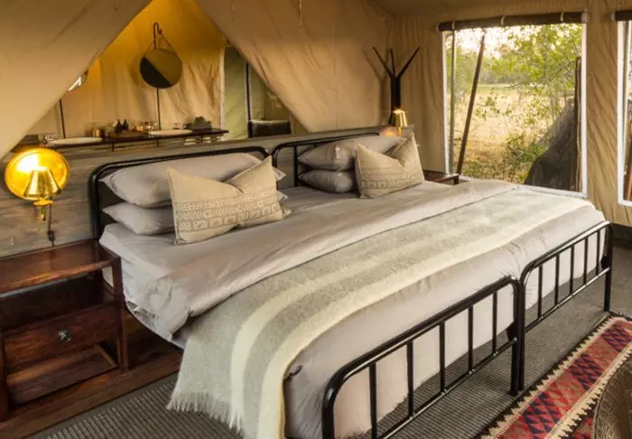 Im Camp gibt es keine permanenten Bauwerke, wodurch man wirklich das Gefühl hat, mitten in der Natur zu sein. Drinnen im Zelt aber spürt man reinen Luxus. Mitten im Zelt steht ein weiches Bett. Sie haben ein eigenes Badezimmer mit fließendem Wasser, eine Dusche drinnen und eine weitere im Freien. Alle Zelte stehen auf Plattformen. Von der malerischen Veranda aus haben Sie eine herrliche Aussicht auf das Gebiet.