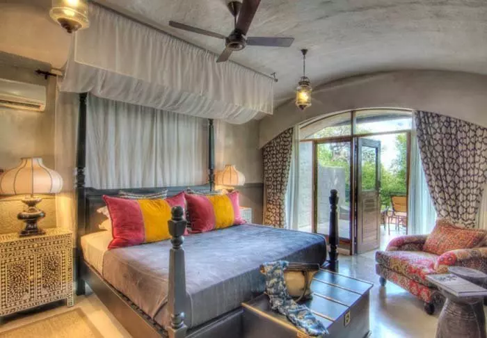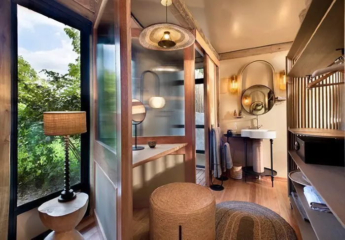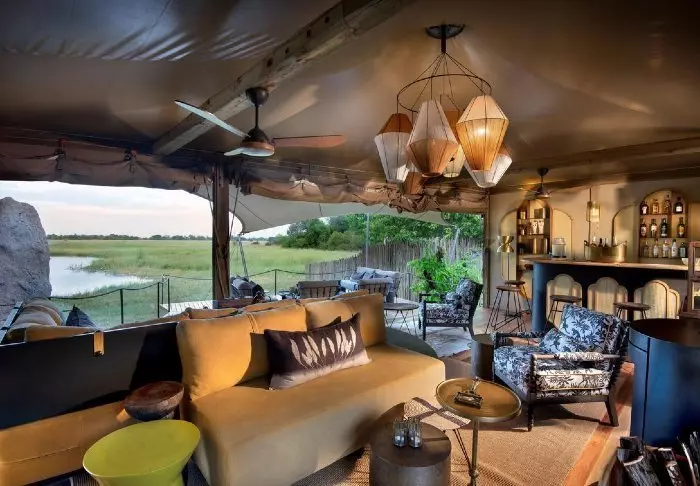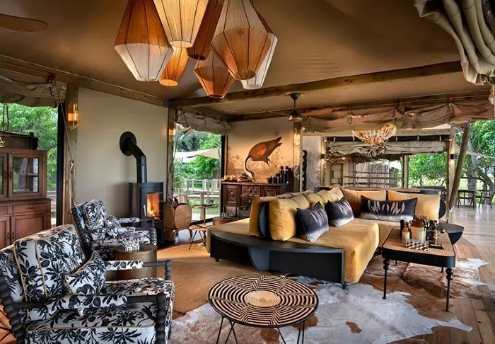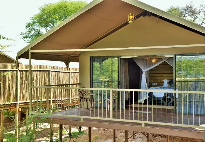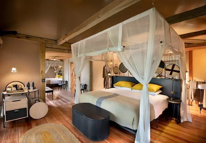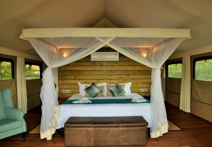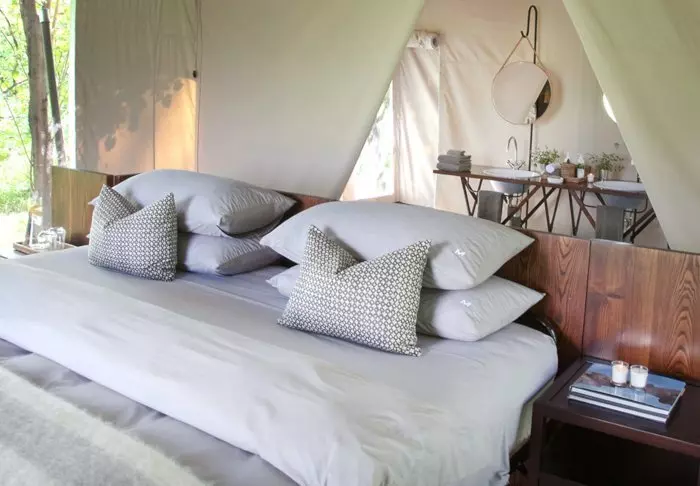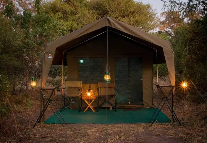 Die 16 Zelte besitzen alle ein eigenes Badezimmer mit frei stehender Badewanne, Klimaanlage, Tee-/Kaffee-Ecke und einen eigenen Balkon. Alle Zelte wurden auf Plattformen auf Pfählen errichtet, sodass die Luft unter den Zelten zirkulieren kann. Die Zelte sind alle gleich eingerichtet. Der Unterschied besteht lediglich darin, ob man eine Aussicht auf den Fluss oder den Garten haben möchte.