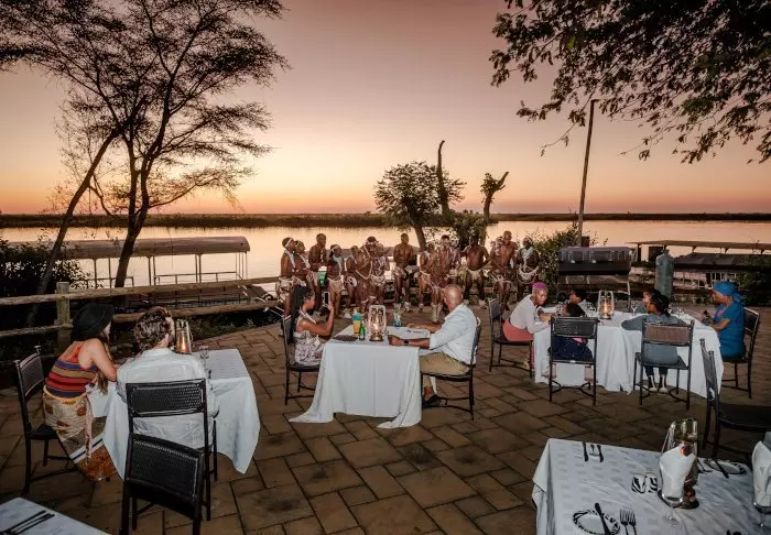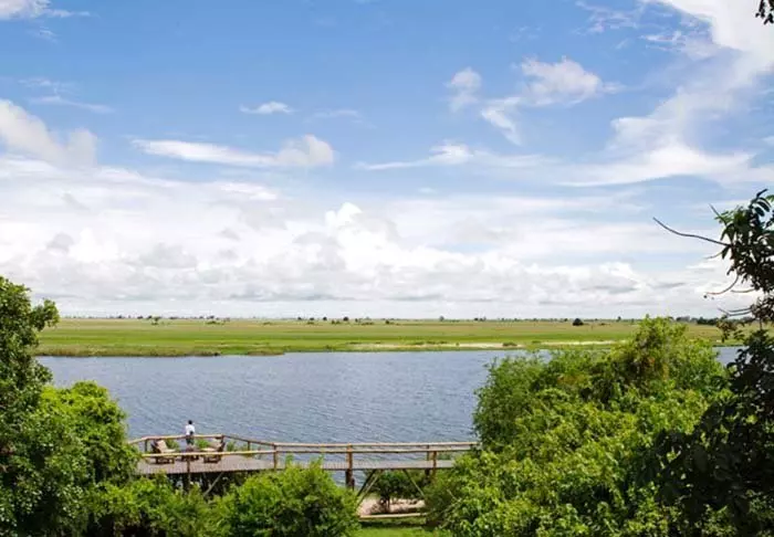 Es gibt einen 250 Meter langen Steg entlang des Flussufers mit einer Reihe an Aussichtsplattformen und weichen Stühlen, Halbschatten und eine unvergessliche Aussicht auf den Fluss Chobe mit seinen vielen verschiedenen Tieren. Genießen Sie den Sonnenuntergang mit einem kühlen Getränk in der Hand – es gibt beinahe nichts Schöneres auf der Welt als einen Sonnenuntergang im Chobe-Nationalpark.