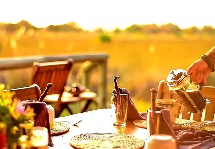 Die Mahlzeiten werden unter dem Sternenhimmel genossen und das Essen ist gut! Frisch zubereitet, voller Aroma und sättigend – man bekommt nämlich großen Appetit, wenn man auf Safari ist. Natürlich werden sowohl kaltes Bier als auch Wein zum Essen serviert, wenn Sie dies wünschen, und es gibt den ganzen Tag über Tee und Kaffee aus der Kanne.