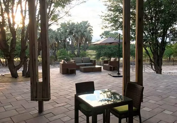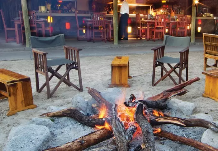 Das große Highlight der Maun Lodge ist aber der Bar- und Restaurantbereich, der wirklich gemütlich ist. Beides ist um eine Feuerstelle im Freien angelegt worden. Am Abend wird häufig ein Lagerfeuer gemacht, sodass man das Abendessen im Schein der Flammen einnehmen kann.