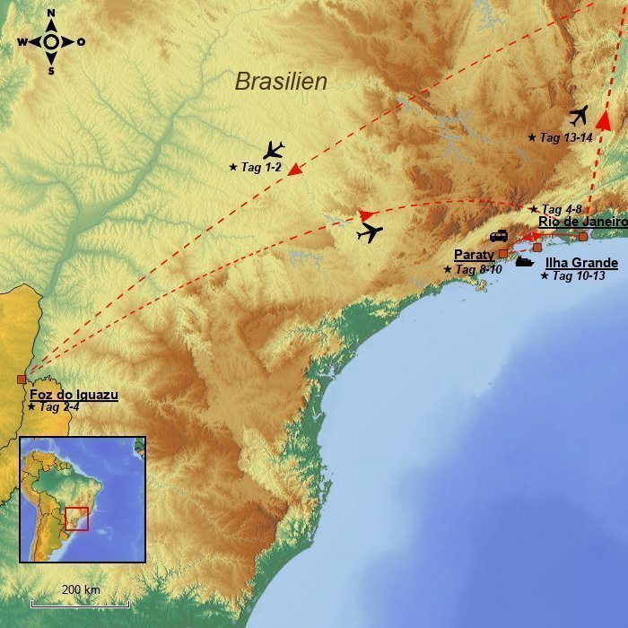 Eine Reise nach Brasilien ist keine Reise, bevor Sie nicht die bezaubernde Stadt Rio de Janeiro besucht haben! Ob es an der ansteckenden Lebensfreude der Einheimischen, der Musik und dem Tanz, dem Leben draußen an der Copacabana oder an den vielen anderen wunderschönen Stränden oder an der Aussicht vom Gipfel des Berges Corcovado liegt, dass hier eine so einmalige Atmosphäre herrscht, müssen Sie selbst entscheiden.