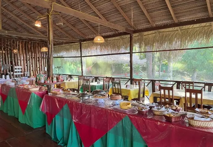 Ihre Mahlzeiten werden als Buffet im Restaurant der Lodge serviert. Sie können Ihr Essen sowohl im Innen- als auch im Außenbereich auf der Terrasse genießen. Von hier aus haben Sie einen wunderschönen Blick auf den Fluss und den üppigen Regenwald.