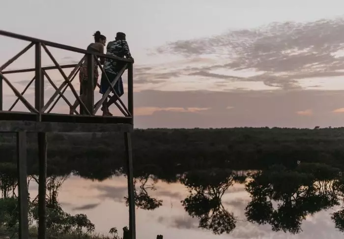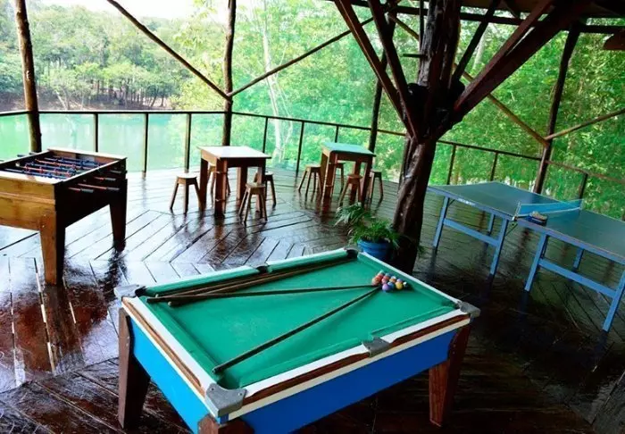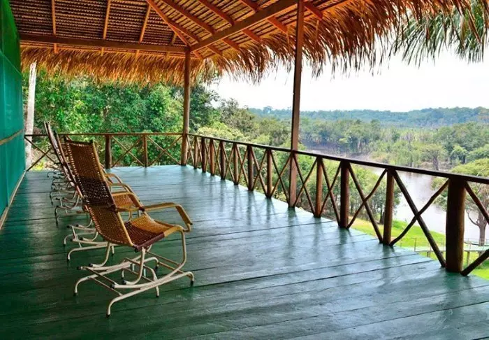 Nach Ihren Erlebnissen im Dschungel können Sie die Gegend um die Lodge erkunden, wo Sie neben dem Restaurant auch eine Sonnenterrasse, eine Gemeinschaftslounge mit verschiedenen Spielen und einen hübschen Garten finden. Sie können außerdem im Fluss schwimmen, und Sie haben vielleicht sogar das Glück, einen der Flussdelfine zu sehen, die sich oft in der Gegend aufhalten. Wenn Sie auf eigene Faust ein Abenteuer erleben und paddeln möchten, stehen Ihnen auch Kajaks zur Verfügung.