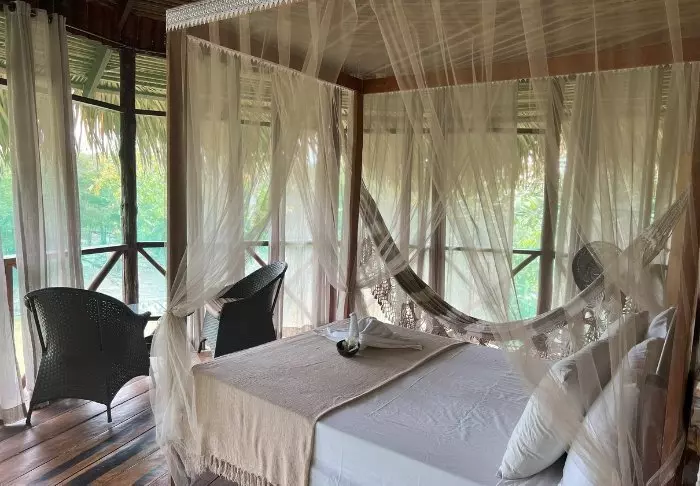 Es ist möglich, auf einen größeren Bungalow mit Blick auf den Dschungel oder auf eine „Oca“-Hütte mit etwas mehr Komfort und Blick auf den Fluss upzugraden.