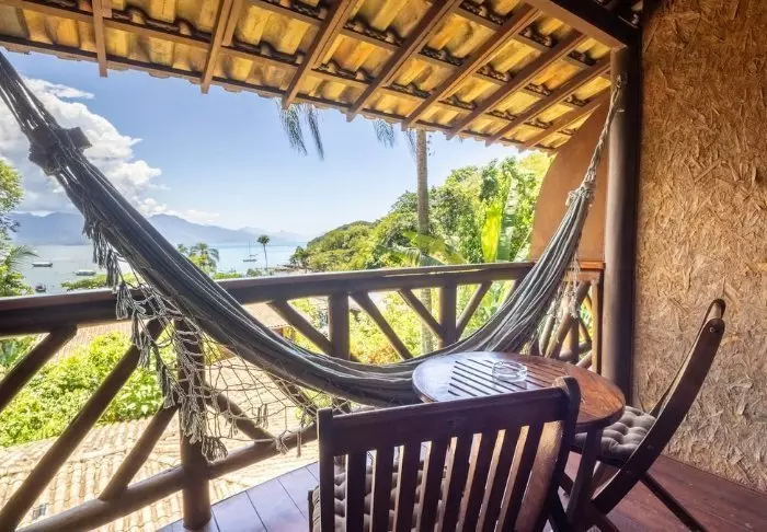 Alle Zimmer besitzen einen eigenen Balkon mit Hängematte, in der Sie liegen und die wunderschöne Aussicht auf das Meer und den Strand in Vila do Abraão genießen können. Alle Zimmer verfügen über gratis WLAN, Klimaanlage, Deckenventilator, Minibar und Safe.