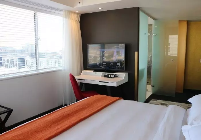 Die Zimmer des Hotels gehören zu den allerbesten der Stadt. Sie besitzen alle einen eigenen Balkon, eine Nespresso-Maschine, ein Flachbildschirm-TV-Gerät, eine Badewanne sowie Aussicht auf das pulsierende Leben im Hafen.