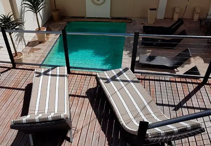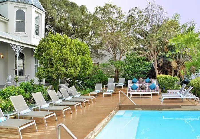 Vom Poolbereich des gemütlichen 4-Sterne-Boutique-Hotel The Cape Milner aus haben Sie eine wunderschöne Aussicht auf den Gipfel des Tafelbergs. Kein Zweifel, Sie sind in Cape Town!