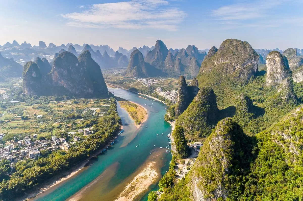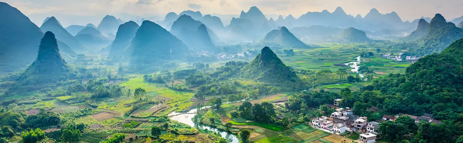 Kultur und Geschichte sind in China äußerst wichtig, aber man darf auch die fantastische Natur nicht vergessen. Daher besuchen Sie natürlich auch die wunderschöne Landschaft von Yangshuo. Hier fließt der Fluss Li an gigantischen Kalksteinbergen und den grünen Reisfeldern der Bauern vorbei – ein wunderschöner Anblick, der auch auf dem 20-Yuan-Schein verewigt worden ist.
