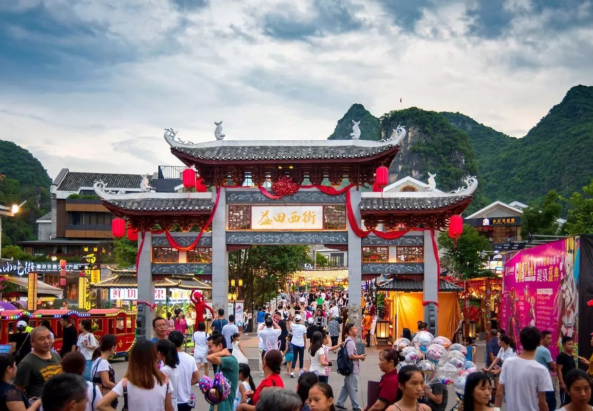 Die Stadt selbst ist sehr lebhaft. Hier gibt es Restaurants und Bars in Hülle und Fülle. Wenn Sie Shopping lieben, ist die West Street genau das Richtige für Sie. Bei der Straße handelt es sich um die älteste Straße in Yangshuo. Ihre Geschichte ist mehr als 1.400 Jahre alt. In der Straße gibt es unzählige Restaurants, Cafés und Läden, in denen man Schmuck, Kleidung, Schuhe, Fächer, Bambusprodukte, Büffelhornprodukte, Porzellan und Vieles mehr kaufen kann.