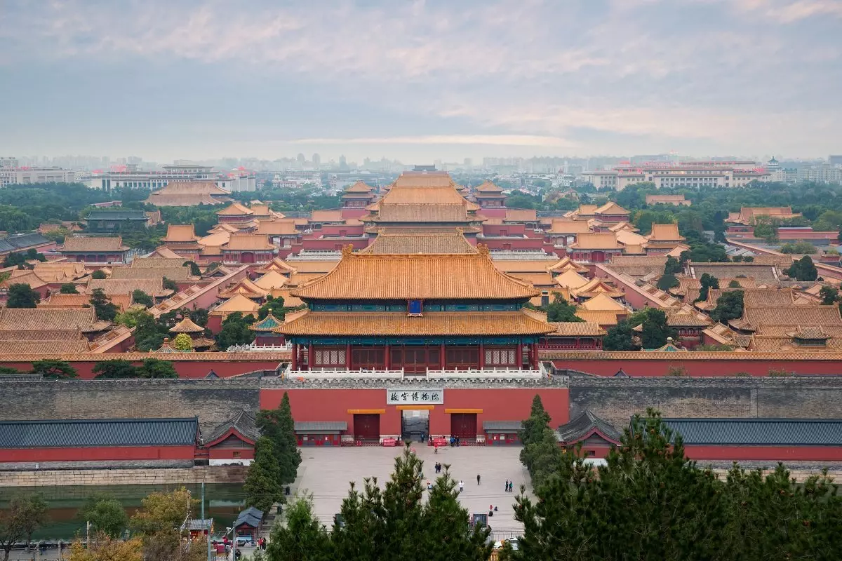 Hinter den dicken roten Mauern erstreckt sich die Verbotene Stadt mit dem großen prächtigen Kaiserpalast. Der Palast wurde im 15. Jahrhundert vom Kaiser Zhu Di errichtet, nachdem er die Hauptstadt von Nanjing nach Peking verlegt hatte.