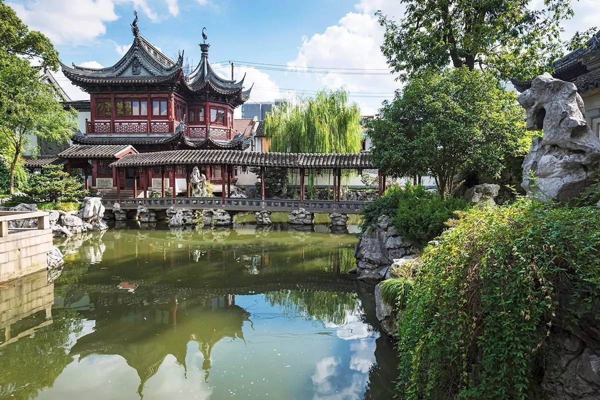Von der belebten Shanghai Old Street geht es weiter zur gut besuchten Jiuqu-Brücke zum Teehaus mit 9 Biegungen, die sich über einen kleinen See mit Karpfen windet. Hier, mitten im See, steht das älteste Teehaus Shanghais, Huxinting, das im Jahr 1855 erbaut worden ist. Die Brücke führt Sie weiter zum letzten Punkt am Tagesplan, dem berühmten Garten Yuyuan – dem edelsten Garten Shanghais.