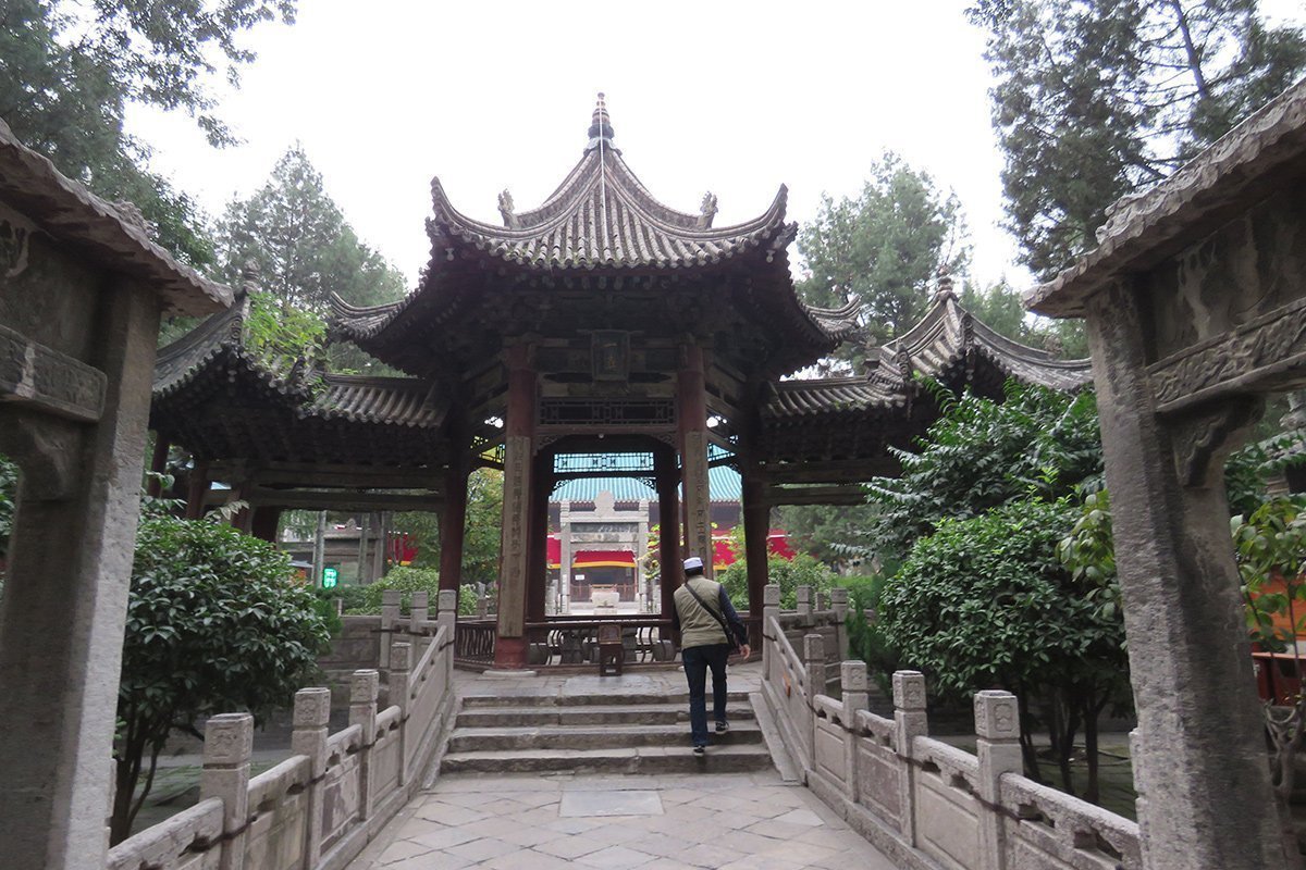 Zuerst besuchen wir bei der Führung die Große Moschee, die älteste und größte Moschee in China. Ursprünglich wurde sie im Jahr 742 während der Tang-Dynastie errichtet, da sich zu dieser Zeit viele arabische Handelsleute in der Stadt aufhielten. Später wurde sie renoviert und mehrere Male erweitert. Obwohl es sich um eine Moschee handelt, ist der Baustil chinesisch. Sie besitzt ein Satteldach, Gärten und Pavillons, allerdings mit arabischen Inschriften.