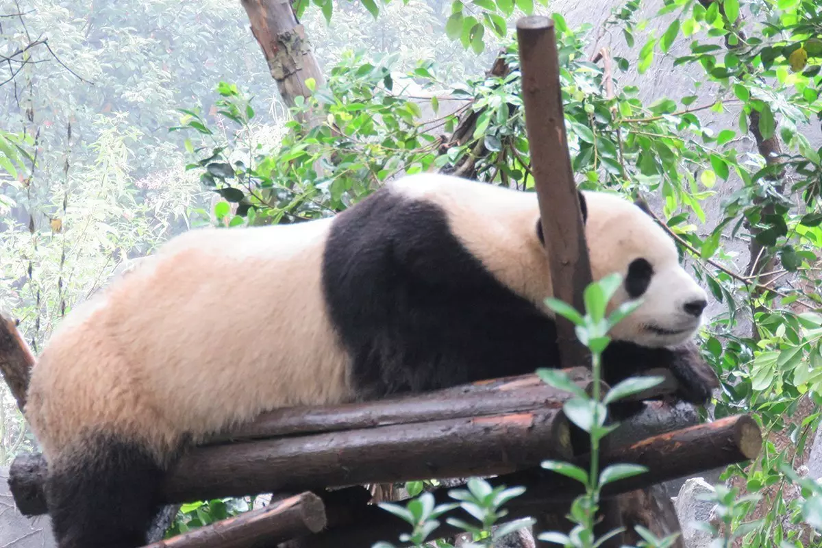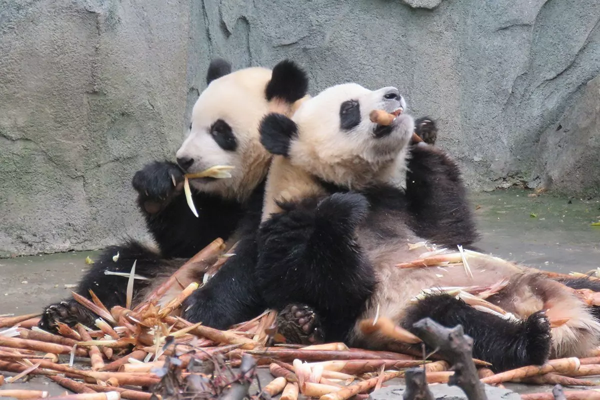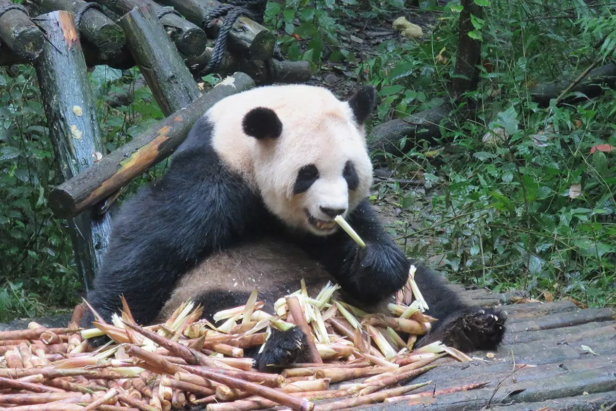 Ein Panda verbringt bis zu 15 Stunden am Tag mit fressen. Bambus ist nicht besonders nahrhaft. Ein erwachsener Panda muss daher zwischen 15 und 20 kg täglich fressen, um überleben zu können. Daher werden Sie auch sehen, dass besonders die ausgewachsenen Pandas faul sind und entweder fressen oder schlafen, während die jüngeren Pandas miteinander spielen.
