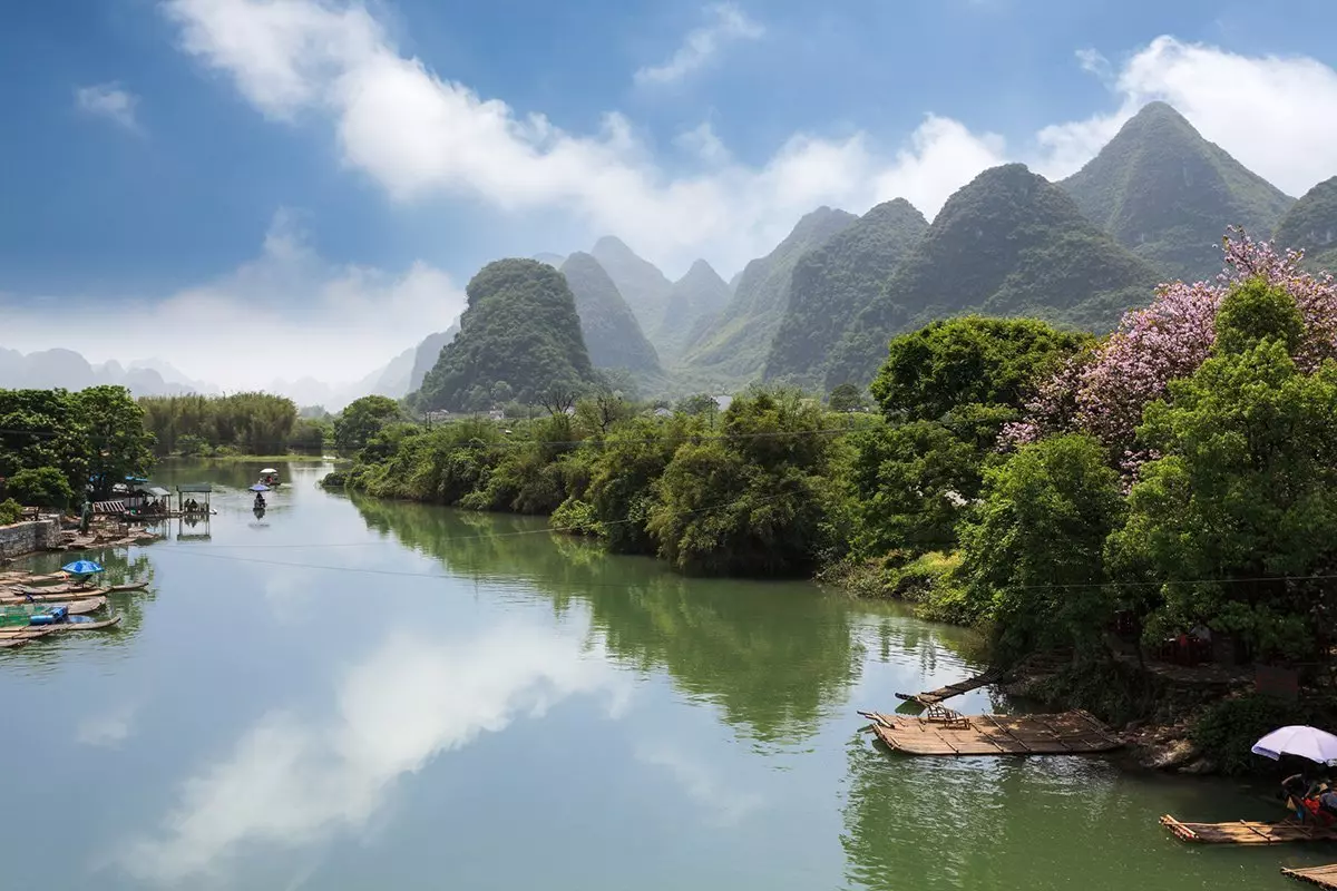 Je weiter nach Süden Sie kommen, desto frischer wird die Luft. Dies wird besonders in Yangshuo deutlich, das Sie mit seiner zauberhaften und malerischen Landschaft verzaubern wird. Hier befinden sich hohe asymmetrische Kalksteinberge, die sich in den ruhigen Flüssen Li und Yalong spiegeln. Diese einzigartige Landschaft ist außerdem auf dem 20-Yuan-Schein verewigt.
