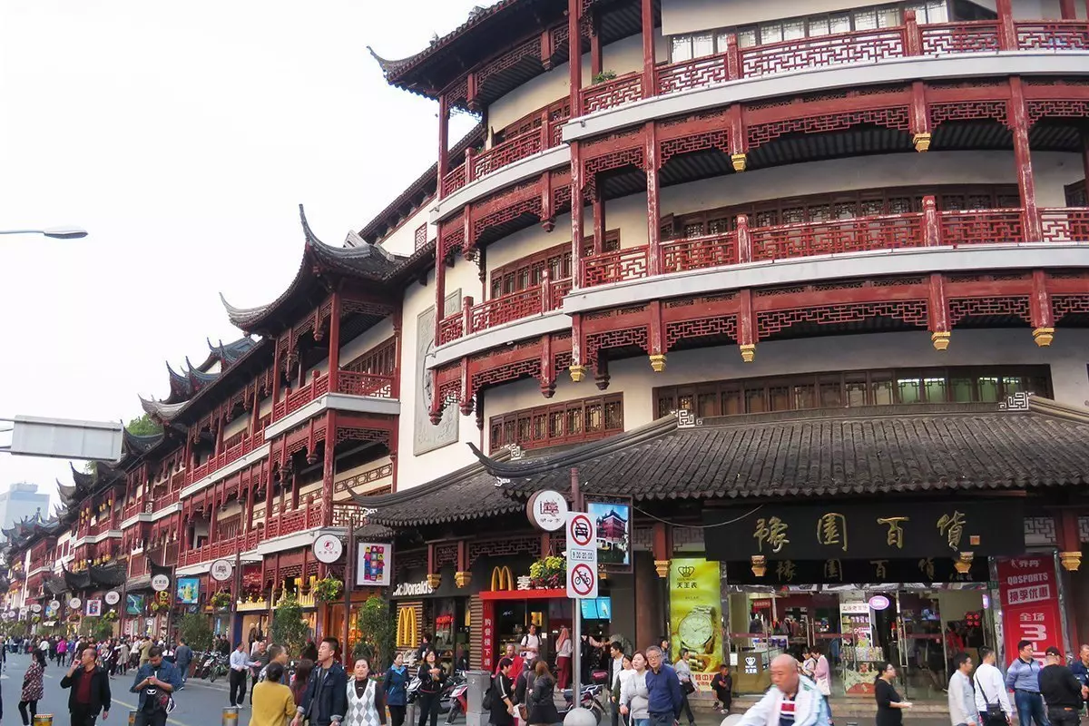 Zuerst geht es zur berühmten Einkaufsstraße Nanjing Road. Mit rund 5,5 km und rund 1 Mio. Besuchern täglich ist sie außerdem die längste und belebteste Einkaufsstraße der Welt. Die Straße verläuft vom Tempel Jing‘an im Westen Schanghais zur berühmten Hafenfront The Bund im Osten, den Sie als nächstes besuchen.