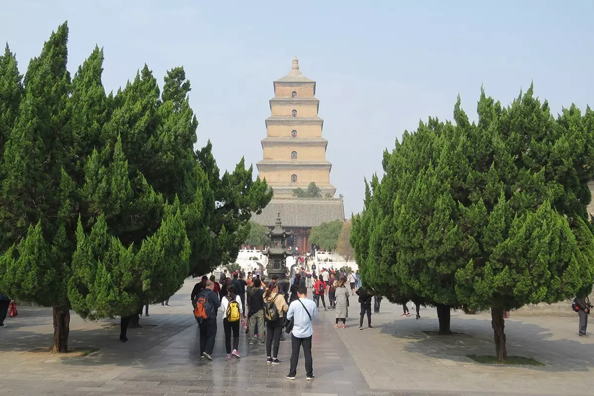 Sie werden danach wieder zurückgefahren nach Xi’an, wo Sie die Große Wildganspagode besuchen, die zum UNESCO-Weltkulturerbe zählt und eine heilige Stätte für Buddhisten ist. Die Pagode wurde im Jahr 652 als Lagerstätte für die wertvollen buddhistischen Schriften errichtet, die der Mönch Xuanzang von seiner Reise aus Indien mitbrachte. Von hier breitete sich der Buddhismus nun rasant auf das übrige China aus, weshalb dieser Ort ein Wallfahrtsort für viele der chinesischen Buddhisten ist. Die Pagode gehört zur Tempelanlage Daci‘en, die während der Tang-Dynastie von 300 Mönchen bewohnt wurde. Heute leben hier ca. 20 aktive Mönche. Der Guide erzählt Ihnen die Geschichte über die sonderbare Namensgebung der Pagode.