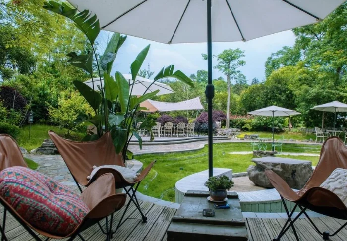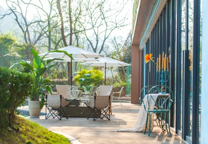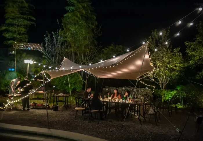 Der Außenbereich ist ein wesentlicher Teil des Erlebnisses. Der Garten ist liebevoll gestaltet, mit Spazierwegen, Pflanzen und gemütlichen Sitzbereichen. Tagsüber lädt er zu einer entspannten Pause zwischen den Ausflügen ein, während sich am Abend die Gäste häufig unter funkelnden Lichterketten versammeln, um die ruhige Atmosphäre zu genießen, in der die Zeit etwas langsamer zu vergehen scheint.
