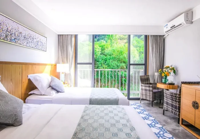 Mit nur 29 Zimmern herrscht im Hotel eine ruhige und persönliche Atmosphäre. Alle Zimmer verfügen über WLAN, eine Klimaanlage, mit der Sie die Temperatur je nach Jahreszeit anpassen können, sowie einen Safe für Ihre Wertsachen. Zudem besitzt jedes Zimmer einen privaten Balkon mit Blick auf die üppig grüne Umgebung. Das Badezimmer ist mit einer Dusche und einem Haartrockner ausgestattet.