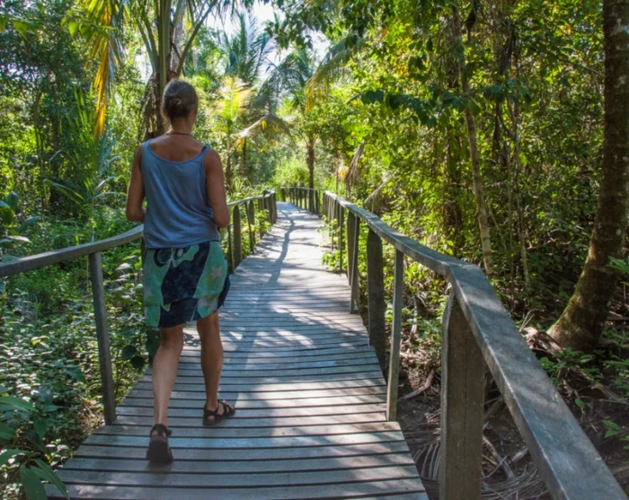 Wenn Sie Lust auf einen entspannten Spaziergang haben, führt Sie der wunderschöne Küstenpfad durch dichten Dschungel, wo Sie beste Chancen haben, Affen, Papageien, Nasenbären und farbenprächtige Schmetterlinge zu entdecken.