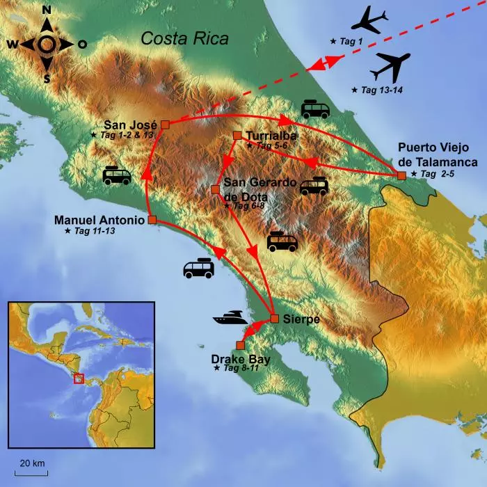 Heute ist es an der Zeit, sich von der freundlichen Bevölkerung und der unvergleichlichen Natur Costa Ricas zu verabschieden. Sie werden vom Hotel abgeholt und zum Flughafen in San José gebracht. Von dort fliegen Sie mit Zwischenlandung(en) nach Hause.